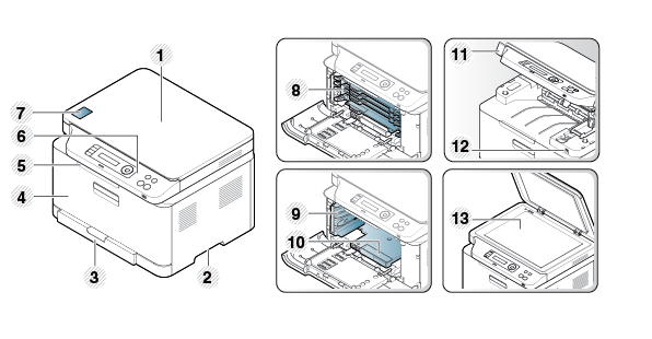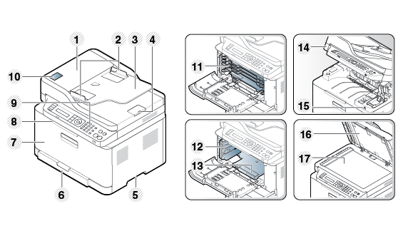 [a] Close the scanner lid before opening the scan unit. [b] Be careful not to pinch your fingers. |