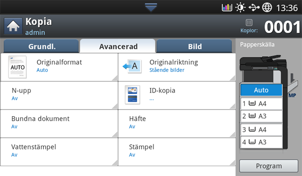 Alternativet aktiveras när originalen placeras i dokumentmataren. |