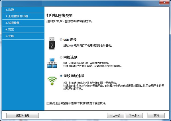 如果接上网络电缆,它在配置无线网络时可能较难找到机器。