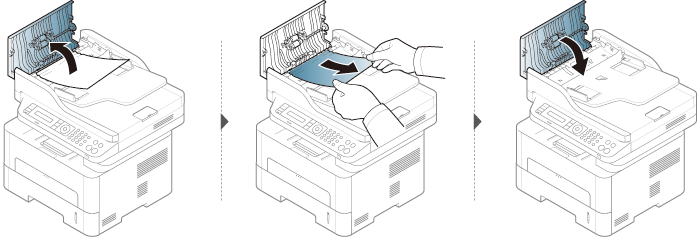 如果原件在进稿器中被卡住,在显示屏上将出现警告消息。