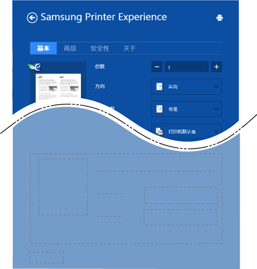 此选项允许您选择基本打印设置,如份数、方向和文档类型。