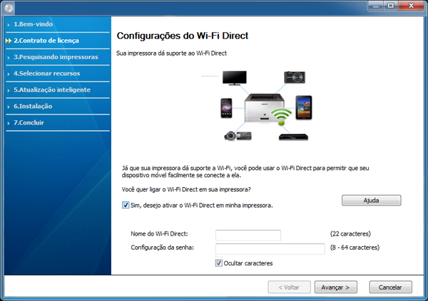 Após concluída a instalação do driver, poderá ser utilizado o Samsung Easy Printer Manager para alterar as configurações do Wi-Fi Direct.