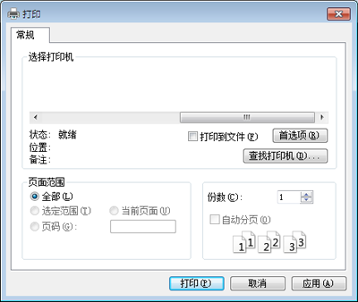份数与打印范围等基本打印设置可在窗口中选择。