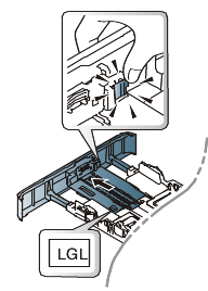 After inserting paper into the tray, squeeze the paper width guides and paper length guide.
