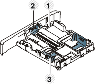 Squeeze and the paper width guide and paper length lever to locate them in the correct paper size slot marked at the bottom of the tray to adjust to the size (see Tray overview).